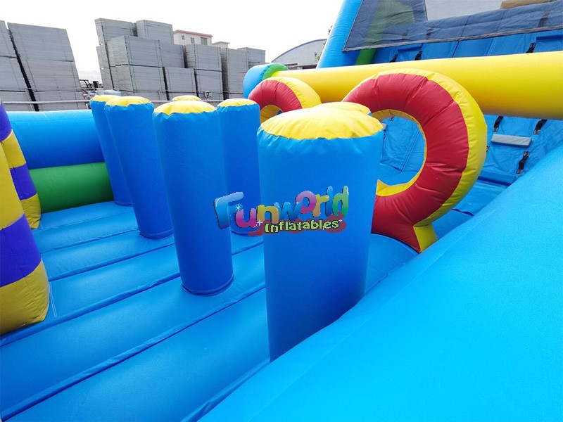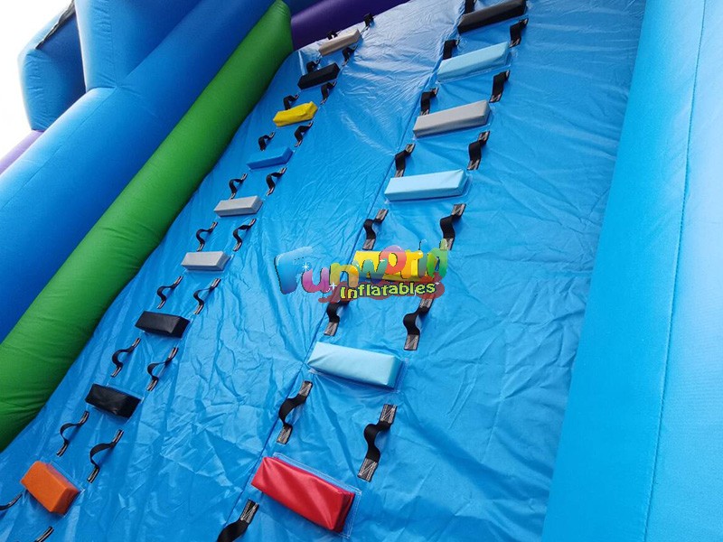 Le point fort de la plupart des parcours est l'imposant mur d'escalade, qui oblige les utilisateurs à tester leur force et leur endurance avant d'atteindre le sommet. Une fois arrivés en haut, les participants sont récompensés par une descente à sensations fortes sur une pente raide, souvent verticale. toboggan gonflable, aboutissant à une zone d'atterrissage en douceur, et nous ajoutons des boucles de sécurité des deux côtés pour sécuriser les systèmes d'ancrage et assurer la stabilité.