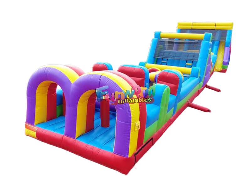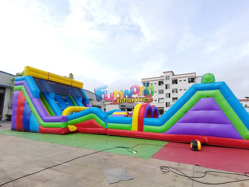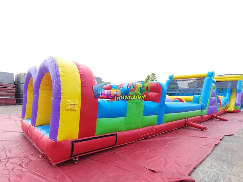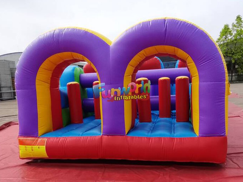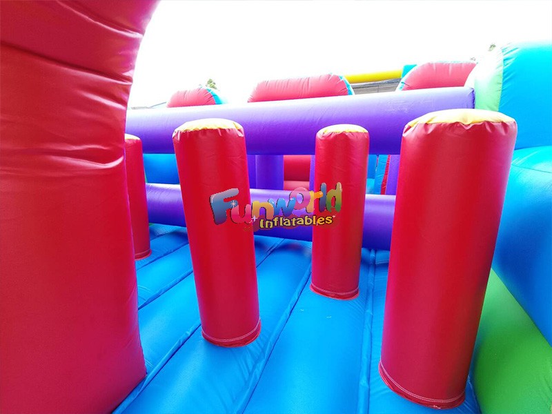 Ce parcours gonflable palpitant offre une action non-stop, avec deux pistes de compétition. Les participants rampent dans des tunnels, franchissent des obstacles surgissant de nulle part, escaladent des murs et dévalent un grand toboggan. Conçu en vinyle résistant et aux couleurs vives, il est idéal pour les événements scolaires, les festivals et les fêtes, offrant des défis d'endurance dynamiques et sécuritaires pour les enfants comme pour les adultes.
