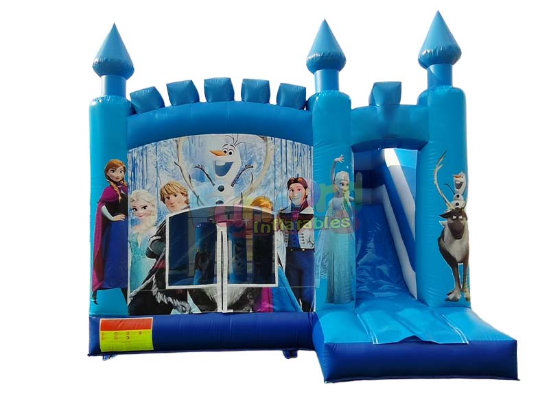 Ce château gonflable avec jeux interactifs Évoque un rêve féérique de glace et de neige. À l'intérieur, divers personnages animés prennent vie, chacun vibrant et charmant. Les flèches impressionnantes du château créent une expérience visuelle époustouflante, réalisant les rêves des enfants. Un élégant toboggan gonflable bleu vif, situé sur le côté droit, ajoute encore plus de plaisir et d'aventure aux jeux des enfants, créant ainsi un espace de jeu captivant.