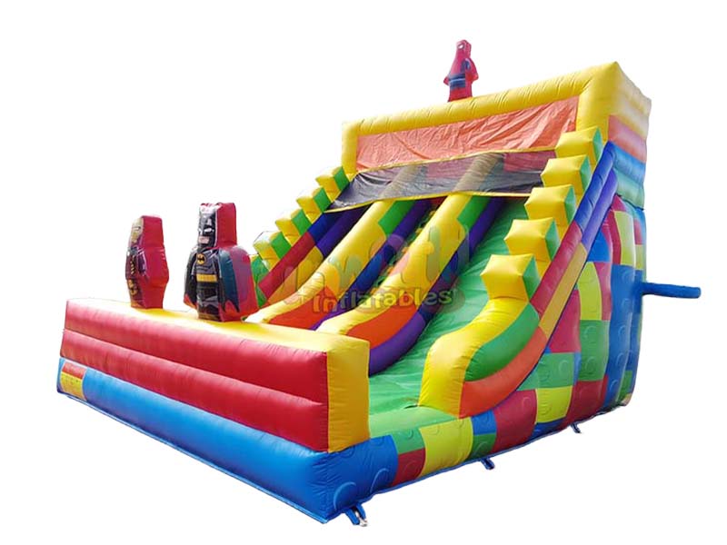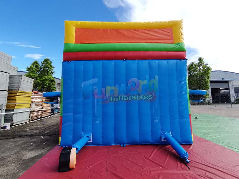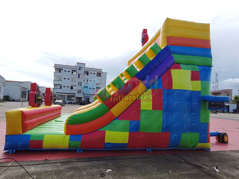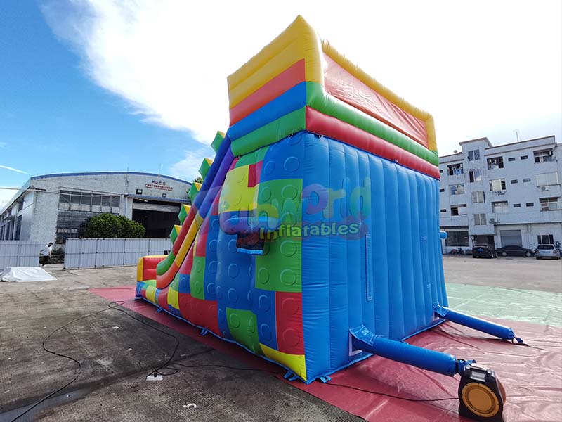 Ce toboggan gonflable pour adultes présente un motif de briques éclatant sur les côtés, rehaussé de rouge, de bleu, de vert et de jaune, créant une expérience visuelle captivante. Sa structure latérale robuste et bien gonflée présente des courbes douces et une texture de brique unique. Les couleurs vives attirent l'attention des enfants et assurent la stabilité pendant l'utilisation, offrant une expérience de glisse agréable et sécurisée.
