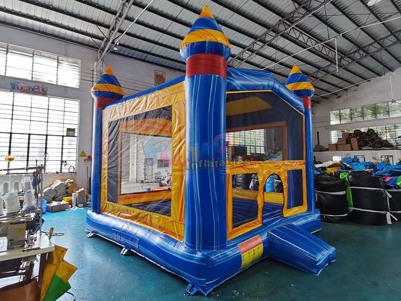 Ce château gonflable commercial est doté de deux marches gonflables bleues à la surface texturée subtile pour une meilleure adhérence et une entrée et une sortie faciles et sécurisées pour les enfants. Son bord inférieur est équipé d'un dispositif de fixation stable, et le corps gonflable est solidement fixé pour garantir la stabilité du château pendant l'utilisation. La sécurité est pleinement prise en compte dans les détails.