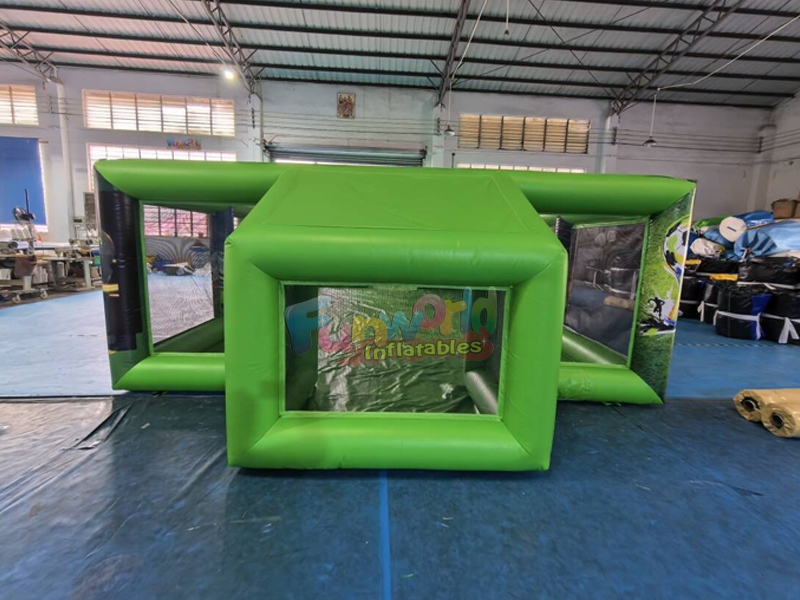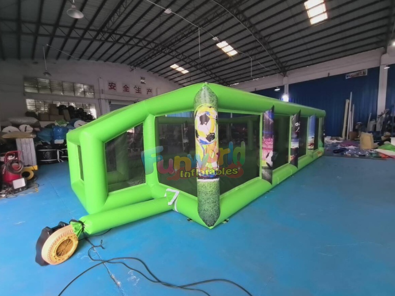 La vedette terrain de football gonflable Il s'agit d'une arène sportive portable et dynamique conçue pour recréer l'ambiance d'un stade professionnel lors de tout événement. Caractérisée par sa structure en PVC vert citron éclatant, elle offre un environnement sécurisé et clos pour des parties de football endiablées, du baby-foot humain ou des séances de tir.
