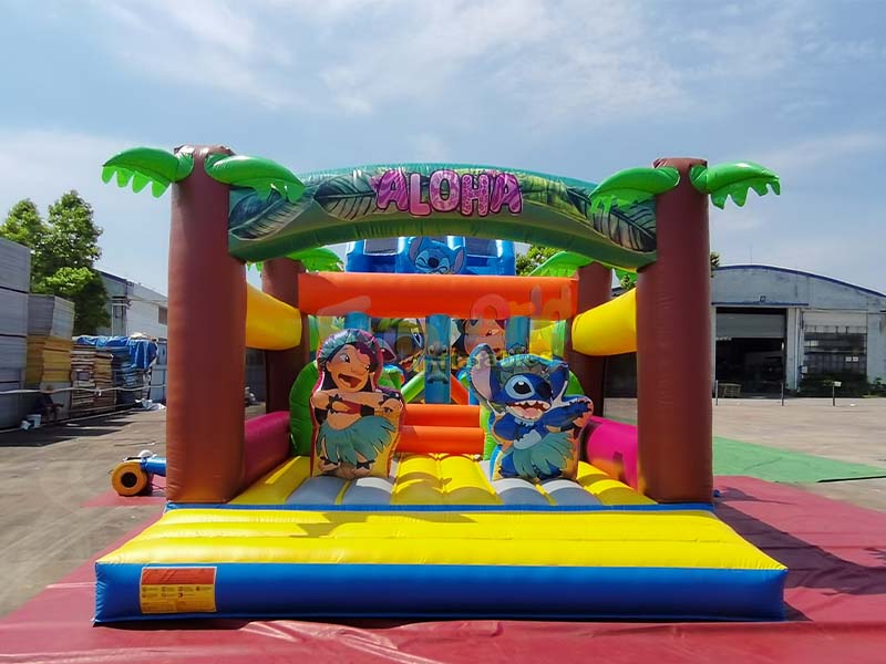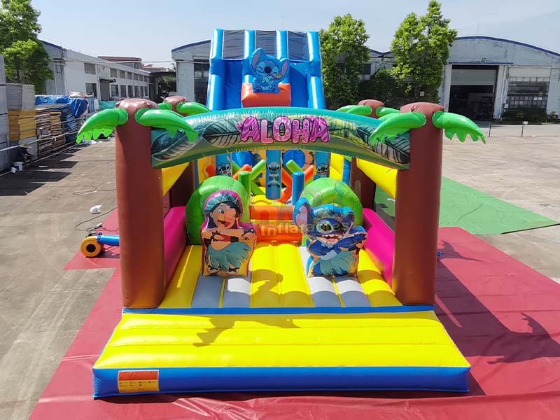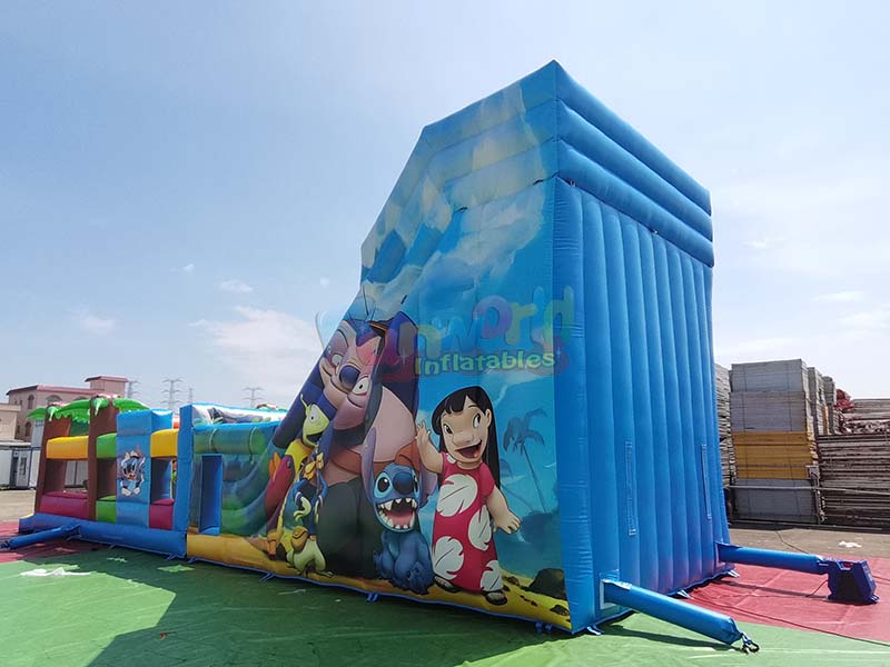 Le grand toboggan gonflable Lilo Stitch intègre toboggan, trampoline, parcours d'obstacles et autres modules fonctionnels, et offre une excellente étanchéité et une grande durabilité.