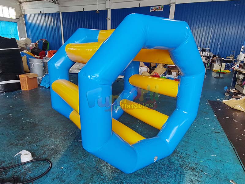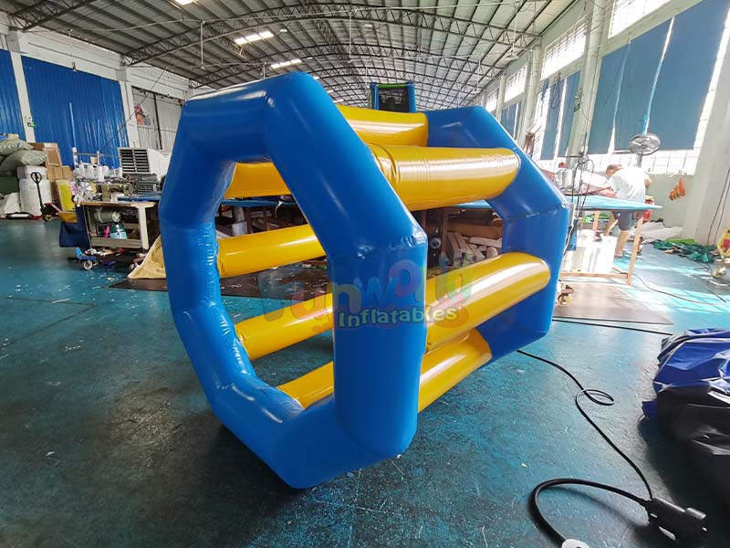 Le jeu gonflable Water Roller est doté d'une structure octogonale bleue aux formes régulières et au design raffiné. Il améliore non seulement la stabilité structurelle, mais crée également un espace de jeu interactif unique, rendant le jeu riche et captivant.