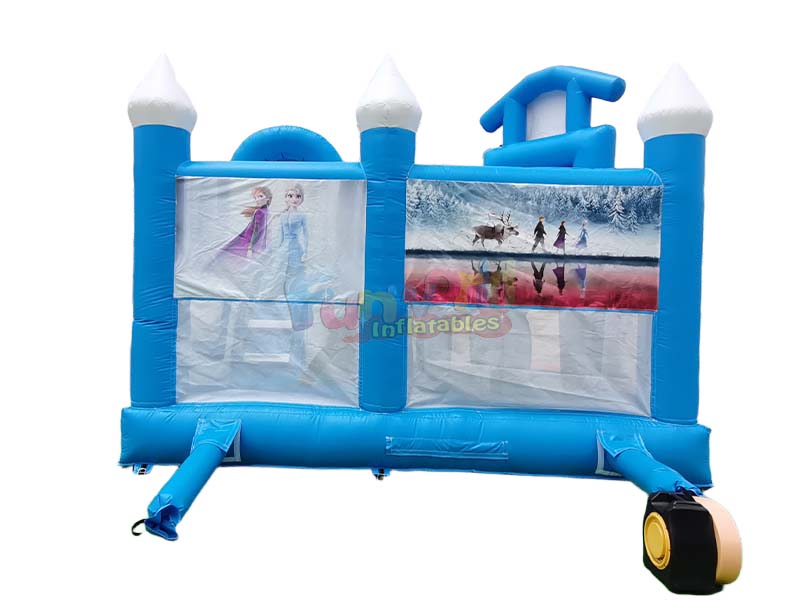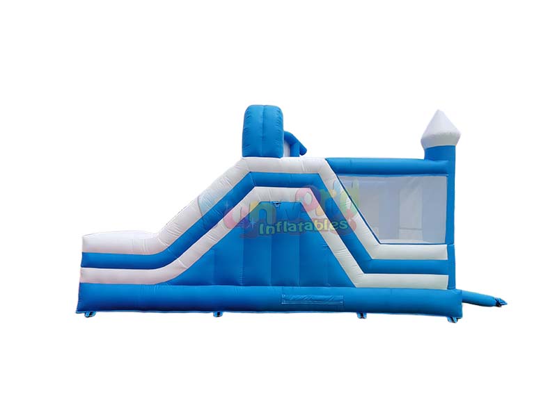 Ce Combo château gonflable extérieur Crée un univers de jeu magique pour les enfants. Il comprend un espace dynamique au design lumineux et ludique, ainsi qu'un élégant toboggan gonflable bleu et blanc. Des éléments structurels uniques, comme le trampoline, complètent le toboggan pour créer un espace de jeu dynamique. Les enfants peuvent sauter, glisser et s'immerger dans cette zone d'aventures enchanteresse sur glace et neige, un monde de plaisir et de sensations fortes.